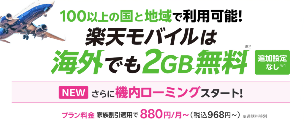 - 楽天モバイルは海外ローミングでそのまま使える
